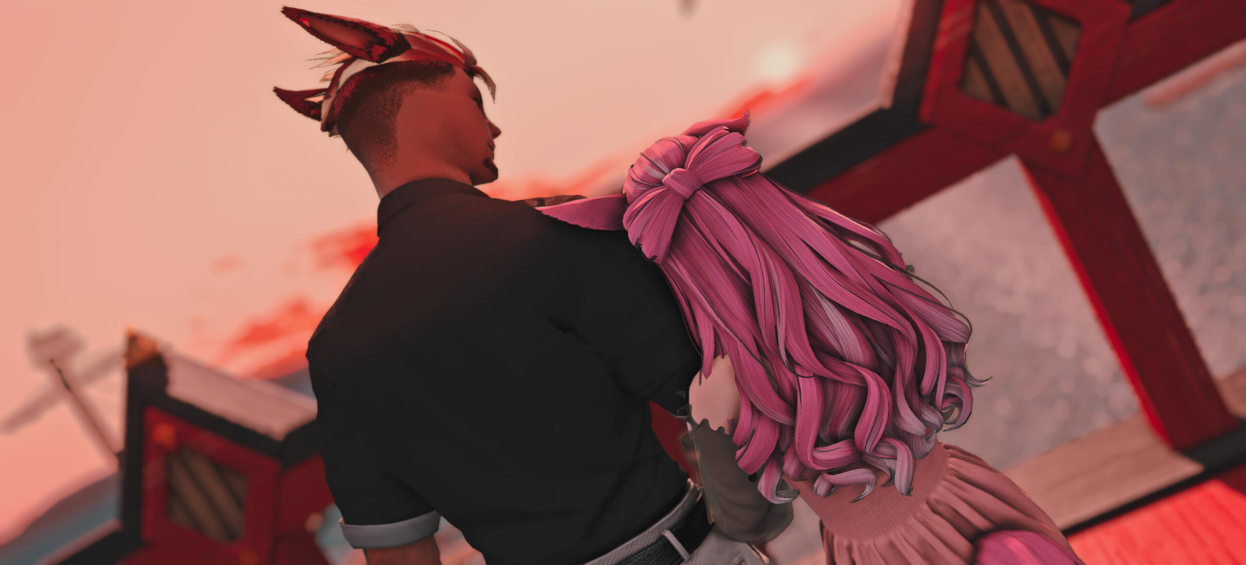 After several years at sea, Kenny had made a name for himself as part of the crew. One evening, on a routine transport job, the crew stopped at a fishing village in Othard. A local festival was being held, and the sailors were invited to join in the festivities. Kenny's crew, always looking for opportunities to tease and poke fun at one another, convinced him to wear a rather...ostentatious outfit, while everyone else wore a more subdued ones. Their attempted tease, however, backfired. Between his colorful getup and his boisterous personality, Kenny was a popular figure, especially with the village women, and one more so than the others; Kimiko Uchiumi.Kimiko was very proper, brought up by her family to be a lady in waiting, though after being passed over for the role, she began working at the family-owned inn. She was known to be reserved, quiet, but kind, a truly proper lady, quite a rarity and a bit out of place in her fishing village. Kenny was immediately drawn to her and to the surprise of those who knew Kimiko as well as the sailors, they hit it off, and spent most of the night walking, talking, laughing, and just enjoying each other's company. Kenny wished the night could last forever, but the next day the ship left port, but his heart was left behind.Over the next year, Kenny left his ship to become a freelancer, choosing to spend more time on boats that frequented Othard's ports so he could make as-frequent-as-possible visits to Kimiko, and before long Kenny was a village staple. As their relationship bloomed, Kenny found himself the topic of village gossip. Kimiko, being a properly trained lady, was normally quiet and reserved, yet when Kenny would be in town her exclamations would sometimes be heard at night, leading to village whispers about Kenny's size and prowess, none of which Kimiko ever responded to.It was one of these visits where Kenny returned to find Kimiko with a slightly swollen belly, which Kimiko confirmed was their child. Kenny fell to his knees, weeping, the first time Kimiko had ever seen him cry, as he held his head against her stomach. He quickly negotiated his leave from the ship he was contracted with, and took up residence with Kimiko in the village, working as a not-so-great fisherman, usually relegated to navigating the boat.Years pass, and their life is happy. Kenny, along with the village hands, built a small house near the inn where Kenny, Kimiko, and their child live modestly but joyfully. Kenny's big laughs brightened the village and ever remained a lovely contrast to Kimiko's more subdued nature. She'd often chastise him for his silly behaviors, but all it took was a heart chuckle and a "Sorry dear, you know how I am" for the corners of her mouth to raise ever-so-slightly as she'd nod her head and continue with the housework.As their child grew, Kenny slowly began taking them along on the boat when he'd go out to fish. Since nearly everyone in the village was involved in some part of the fishing trade, Kenny felt it would be good experience, even if they decided not to be on the boat and instead worked to support the village some other way. During one of these trips, the waters became strangely rough, seemingly out of nowhere, and a sudden storm hit. The crashing waves were so turbulent that the child fell overboard before anyone could reach them. Kenny immediately dove overboard, despite the danger, however between the darkness of the could, the tumultuous waves, and the sheets of rain, Kenny could not find any sign of his child. The boat's other crew members used all their might and managed to pull him back on, despite his screaming and raging protests, and had to tie him down to stop him from jumping overboard again before they somehow manage to return to the port.Back at the village everyone was in shock. Kenny and Kimiko were beside themselves, trying to remain hopeful, though everyone quietly knew the likely outcome. When the storm finally died down the next morning, a body had washed up on shore. Kenny was beside himself, and Kimiko's always-proper veneer was shattered and broken. The village mourned as well, but there was no consoling the parents.After the funeral, Kimiko fell into a deep depression, holding up in bed for months mourning while Kenny tried his best to work the boats and maintain the house. Every night Kenny would go to comfort Kimiko, but when she would see his face her tears would swell up, and so would his. Reflected in their partner's gaze was also the gaze of their now-lost child, a gaze they could never unsee. More months passed with no change, and it became clear to Kenny that Kimiko would never heal as long as he was around. It took weeks for him to work up the courage, but Kenny decided to tell Kimiko he was thinking of leaving. That night was a ferocious one, they yelled and screamed and cried, but Kimiko soon realized Kenny might be right, that she could never simply see him again without seeing the face of their child.And so, Kenny left the village, and soon after Kimiko left to return to her family's farm. No one in the village asked questions, they knew better, and her family did not question her decision. That was the last he heard or saw of her. Kenny made sure he avoided Othard and ships he knew frequented its ports. He made sure not to ask about her or put himself in a position where others might ask him. He knew that if he ever heard she was alone he might go back to her, and if he heard she had moved on with someone else he might be devastated, so he locked away that part of his heart, living with the uncertainty but knowing no other way. He soon returned to Limsa Lominsa to work at his family's shop, still the jovial, big-hearted guy who will try anything, help anyone, encourage everyone, but there was sometimes a quiet sadness about him, one his family thought better than to ask about. When people would mention he seemed fatherly, he would often respond "Maybe in a past life" because to him it really 