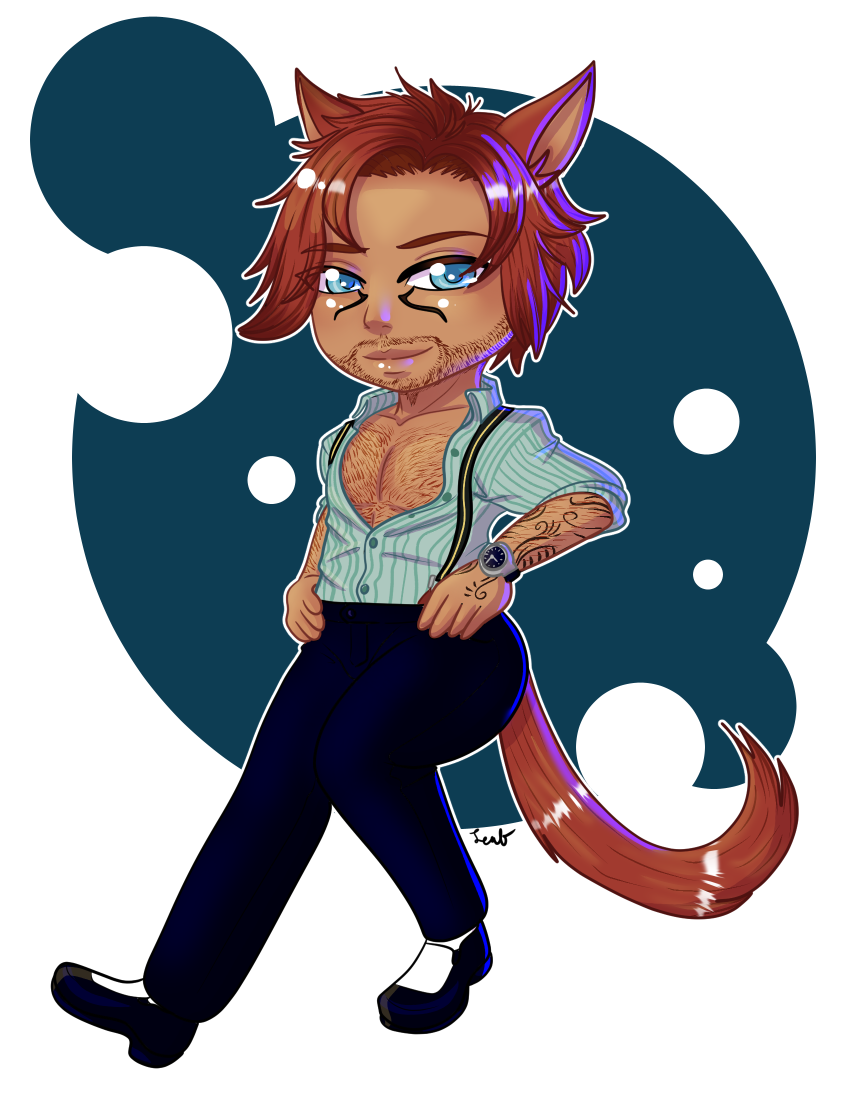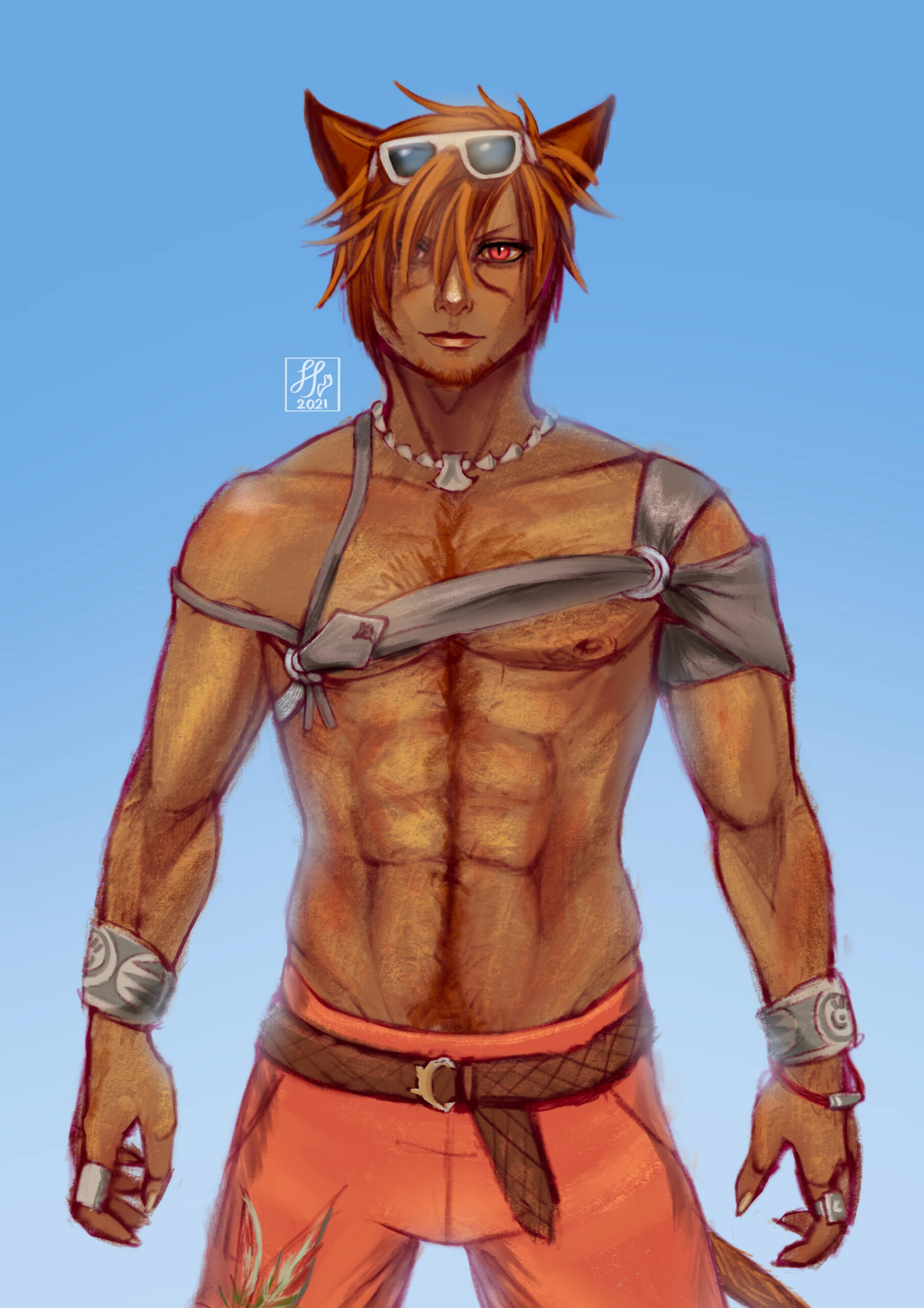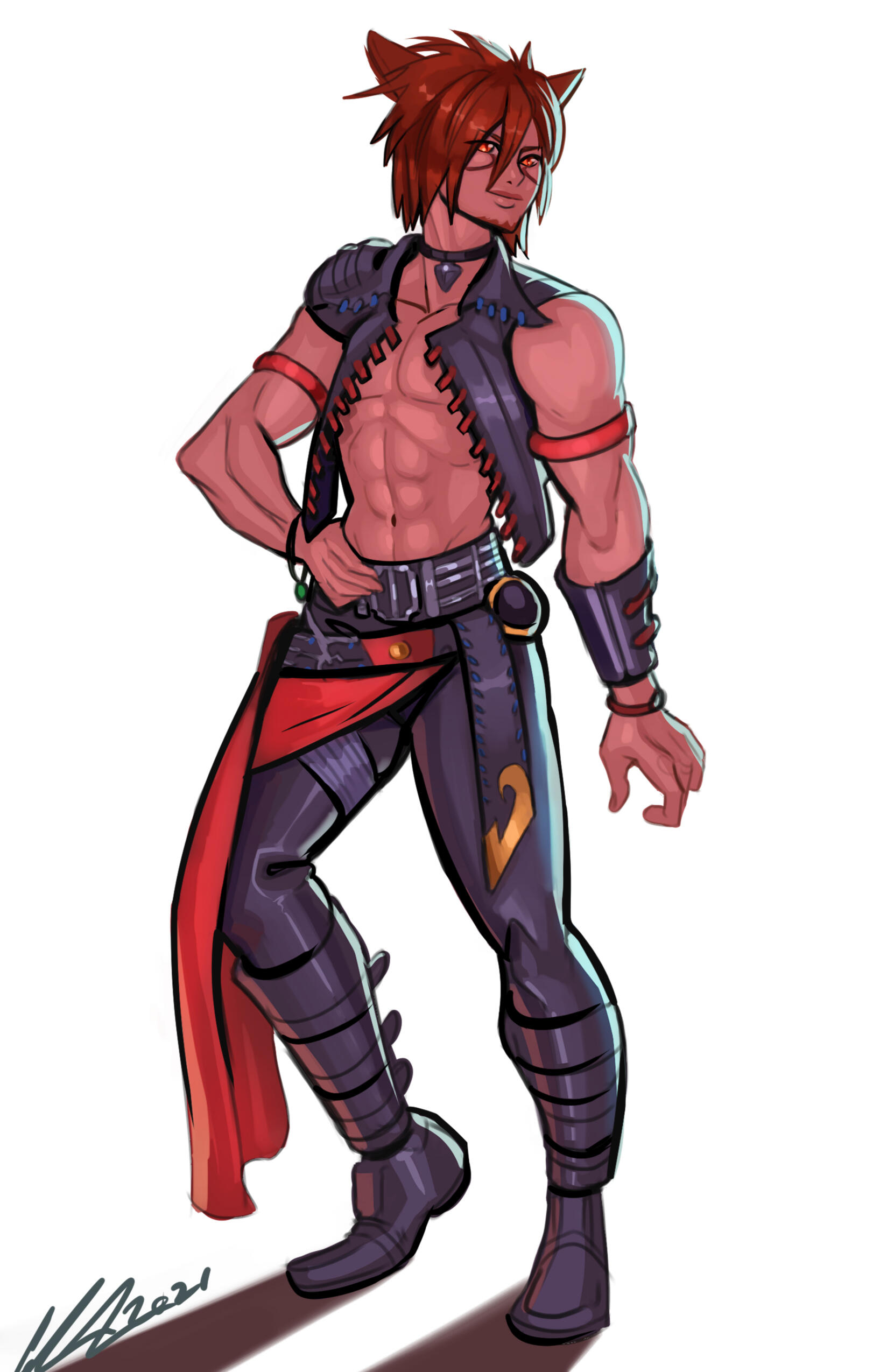 Atal grew up on the streets of Ul'dah, the son of refugees from Ala Mhigo. His mother made and sold dyes in the market out of local flora using family techniques passed down for generations while his father fought as a gladiator. While Atal was trained to fight by his father, he spent most of his day skipping school to run small errands for the various cartels in the city, saving up his money little by little and betting through proxies on fixed gladiatorial matches, giving his cartel contacts a cut as thanks.As he came of age to adulthood, his parents expected him to follow in one of their footsteps, but instead he simply told them he'd already been working and wanted to enjoy his youth. He never asked his parents for gil, and even offered to pay rent, but they never accepted. While they were concerned he was falling in with a bad crowd, he seemed to be making his own way, and that was enough as long as he was safe.He quickly leaned into his independence and started hitting up venues across Eorzea, using the wit and charm he'd learned from working the streets and with the cartels to work his way into beds and boudoirs. His dark complexion, devious smirk, and charming conversation made him many friends, as well as a few enemies, and has made him known as a reliable, somewhat goofy, but fun time.