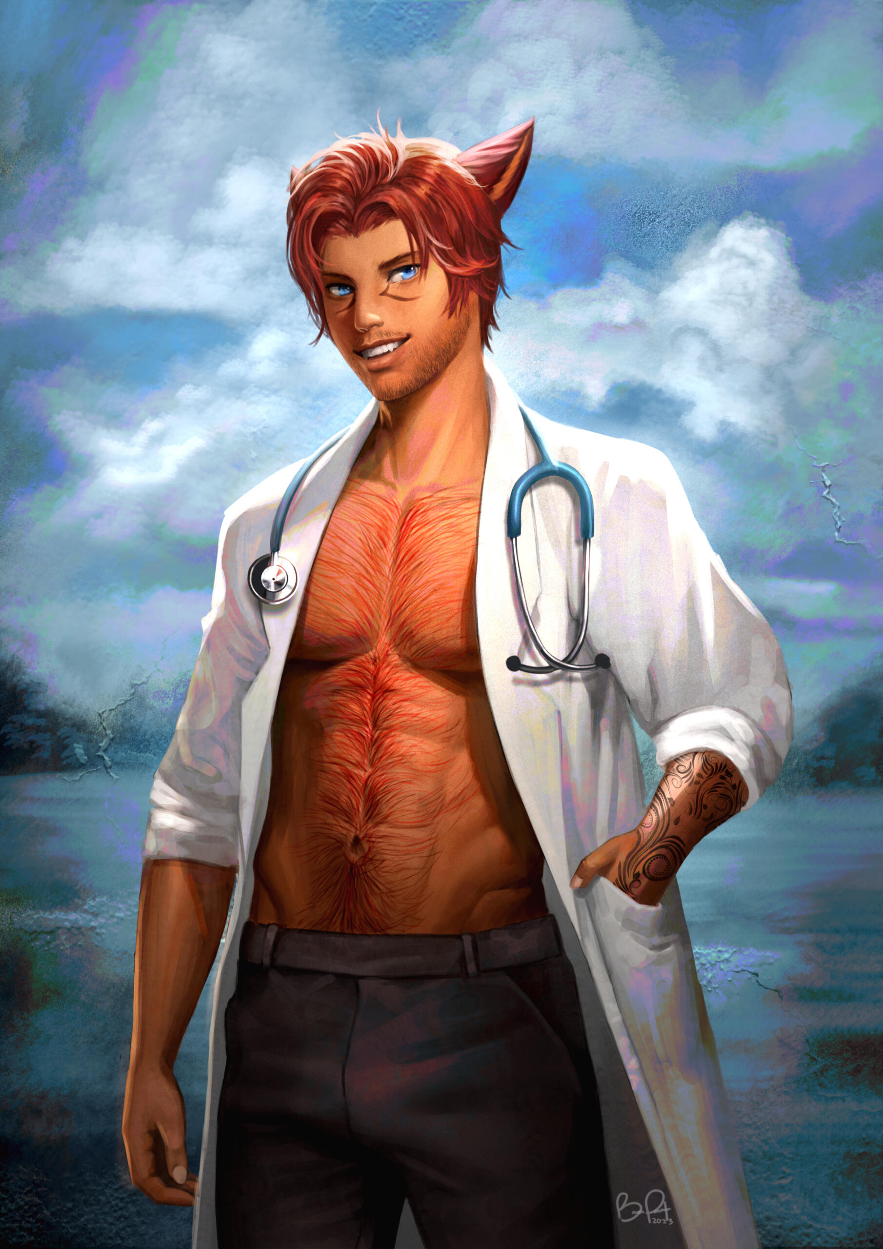 Born W'mathras Tia in a traditional Seeker of the Sun tribe, Mathras had an easy life as the youngest son, the apple of his mother's eye. He fell in love as a teenager, something unheard of in traditional Miqo'te tribes, and after having his feelings rebuffed, dedicated himself to becoming a Nunh. After grueling training, he finally earning his title, several years after his older brother had. When he went to find his lady love, she was already with child, sired by his brother who knew of his feelings.After beating his brother to a bloody pulp in front of the tribe in anger, he left it behind, wandering aimlessly in Eorzea, joining mercenary groups and learning to heal, all the while maintaining his Nunh training. He drowned himself in empty pleasures: alcohol, sex, and drugs, but found no meaning until meeting a young woman who'd left his tribe and recognized him but wasn't afraid, and told him it was okay to let go before bidding him farewell.He was never quick witted though he was always competent, so he put his skills to use joining a clinic, leaving his wild days behind, quickly replacing his old habits with a love for hot springs, visiting whenever he could. He now works as a medic in the clinic, located in Lima Lominsa, and enjoys lazing about his home cooking or soaking in the tubs when he's not at work. After years of maturing, finally leaving his Nunh title in the past, and adopting a city name, he's more free than ever to chase his passions instead of skirts.